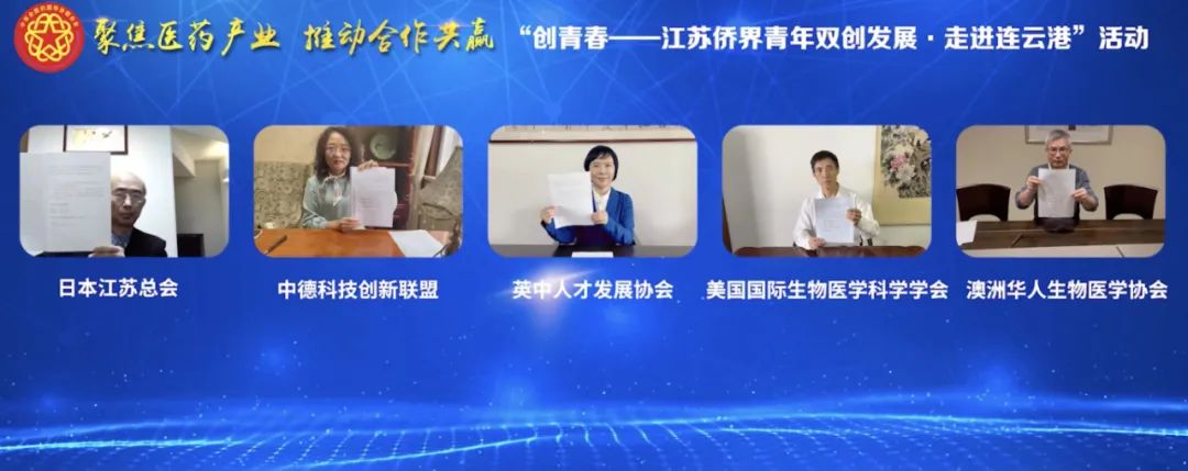 活動中,集團公司通過線上方式,與日本江蘇總會、中德科技創(chuàng)新聯(lián)盟、英中人才發(fā)展協(xié)會、美國國際生物醫(yī)學(xué)學(xué)會、澳洲華人生物醫(yī)學(xué)科學(xué)協(xié)會等海外僑社團簽署了合作意向書;集團公司國際醫(yī)藥創(chuàng)新產(chǎn)業(yè)園與4家省內(nèi)僑青企業(yè)現(xiàn)場簽訂合作協(xié)議。