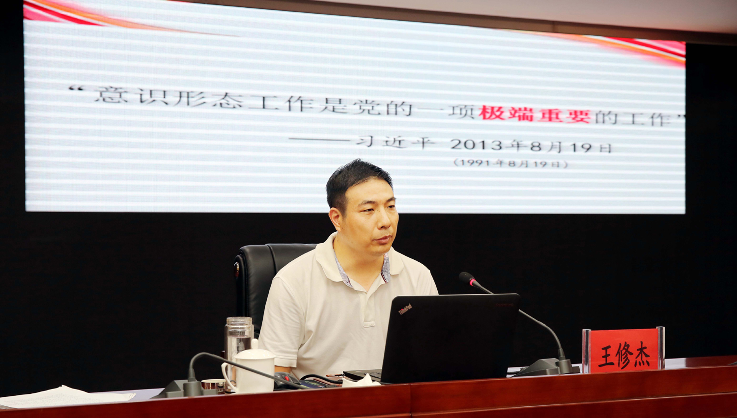 王修杰以“牢牢掌握意識(shí)形態(tài)工作的領(lǐng)導(dǎo)權(quán)”為題,結(jié)合國(guó)際國(guó)內(nèi)形勢(shì)和我市實(shí)際,圍繞充分認(rèn)識(shí)意識(shí)形態(tài)工作的極端重要性、深刻把握當(dāng)前意識(shí)形態(tài)領(lǐng)域復(fù)雜形勢(shì)、全面落實(shí)黨委意識(shí)形態(tài)工作責(zé)任制等方面內(nèi)容,深入淺出的剖析解讀了意識(shí)形態(tài)工作的基本內(nèi)涵、重大意義,報(bào)告主題鮮明、內(nèi)涵深刻、闡述透徹、聯(lián)系實(shí)際、條理清晰,既有理論思考、又有經(jīng)驗(yàn)總結(jié),為與會(huì)人員深刻理解和把握新時(shí)代國(guó)企意識(shí)形態(tài)工作的新使命、新要求、新任務(wù)、新方法具有很強(qiáng)的現(xiàn)實(shí)指導(dǎo)意義。