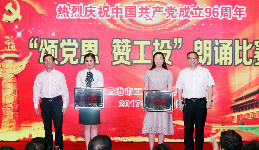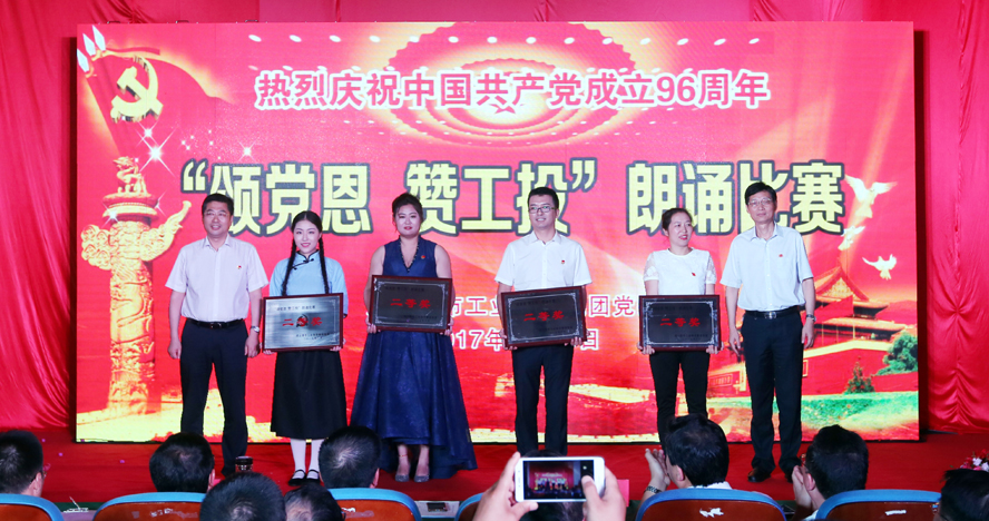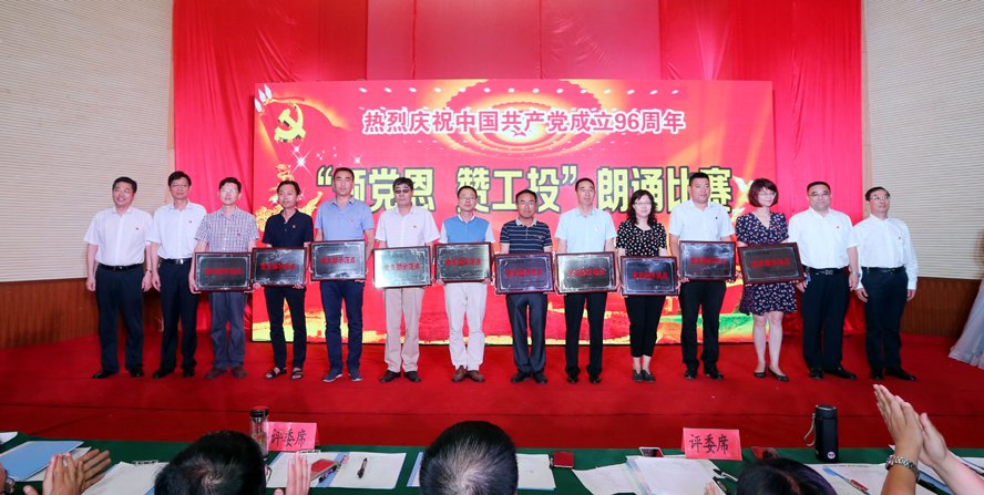為慶祝中國共產黨成立96周年,緬懷黨的豐功偉績,6月29日下午,集團公司黨委在連云港職業技術學院文化藝術中心舉辦“頌黨恩·贊工投”朗誦比賽,集團公司領導楊龍、胡建明、張其海、王士華、戴鴻鳴、汪群、匡友本、陳如軍與來自集團公司各條戰線的近三百名代表歡聚一堂,共同慶祝黨的96歲華誕。