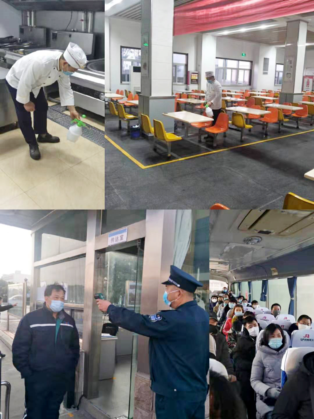 全力做到三個全覆蓋。一是消殺全覆蓋,做到無死角。結合疫情防控實施方案全面開展衛生整治消殺,對進廠車輛、食堂、廁所、辦公區、操作平臺、作業電梯等進行全面消毒,每4小時進行噴灑消毒液消毒。二是摸排全覆蓋,做到無縫隙。以部門為單位進行全員摸排并建立日報制度。在公司門口使用溫度檢測儀器測量入廠人員體溫,體溫正常允許進入,發現體溫異常人員立即上報公司安全部或者值班領導執行應急隔離救援。對外地回廠人員,特別對疫區或途徑疫區的到廠人員進行重點摸排,對與武漢方面人員有接觸的員工采取暫停上班、居家隔離措施。三是宣傳全覆蓋,做到無遺漏。利用公司宣傳欄、紅色長廊、網站、公眾號、微信群等宣傳陣地開展宣傳培訓。將公司的防控措施、應急預案、就醫流程、疫情防護等應知應會的防疫知識傳達到每一位員工,引導他們科學防疫。