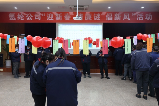 2月7日,新春佳節來臨之際,杜鐘氨綸公司紀委組織“迎新春 猜廉謎 倡新風”活動。職工歡聚一堂,通過謎語與廉潔相結合的形式共同迎接龍年。