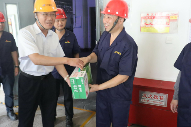 7月17,集團(tuán)公司黨委副書(shū)記、工會(huì)主席戴鴻鳴和副總經(jīng)理劉承志來(lái)我司走訪(fǎng)慰問(wèn)高溫下奮戰(zhàn)在一線(xiàn)崗位的廣大職工,送去防暑降溫物品和親切慰問(wèn)。