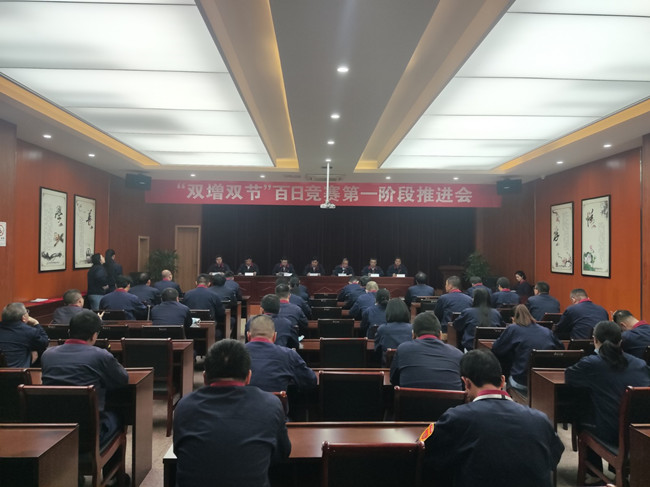5月10日上午,杜鐘氨綸公司召開“雙增雙節”百日競賽第一階段推進會,公司領導層、副部長以上人員、獲獎代表共計50余人參加會議。常務副總經理楊森主持會議。