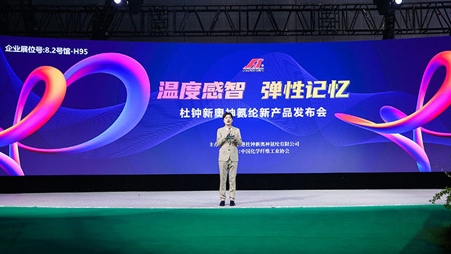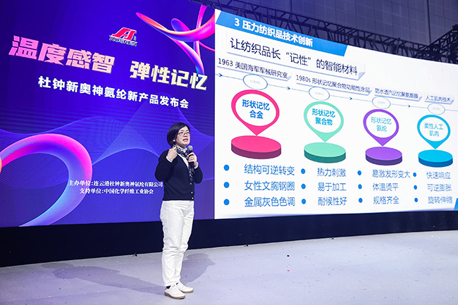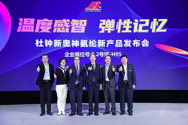 3月29日,連云港杜鐘新奧神氨綸有限公司“溫度感智,彈性記憶——杜鐘新奧神氨綸新產品發布會在國家會展中心(上海)精彩呈現。中國化學纖維工業協會會長陳新偉、中國化學纖維工業協會總經濟師、氨綸分會常務副會長李增俊、江南大學教育部針織技術工程研究中心副教授萬愛蘭蒞臨現場,來自產業鏈的知名面料、服裝企業200余人參加了本次發布會,一起分享奧神創新研發成果,探索氨綸應用新方向。