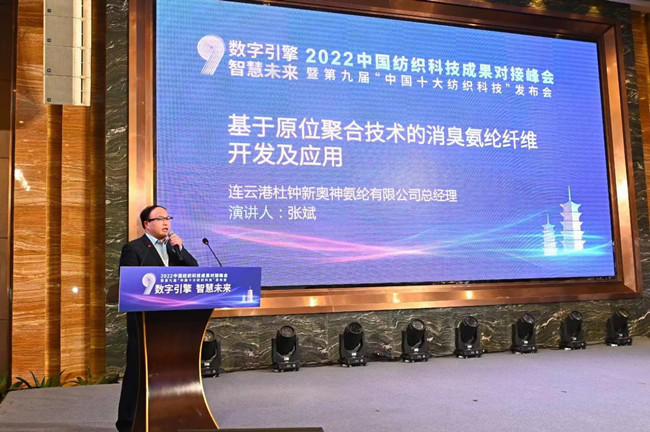 本次會議以“數字引擎 智慧未來”為主題,氨綸公司申報的“基于原位聚合技術的消皇氨綸纖維開發及應用”項目榮獲“中國十大紡織科技·新銳科技獎”。