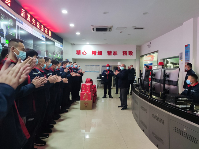 “過年了,你們還堅守在第一線,大家辛苦了。”1月22日,大年初一一早,陽光明媚,集團(tuán)公司董事長丁銳一行在杜鐘氨綸公司總經(jīng)理張斌的陪同下來我公司,對春節(jié)期間堅守一線的員工們送上新年祝福和慰問品。