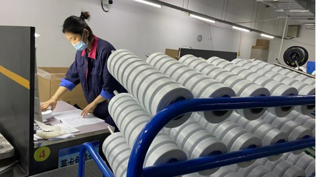 品保部全體員工積極配合公司疫情防控要求,挑選精兵強將駐廠保生產。從11月20日起,八期外檢開始包裝萊卡產品,外檢員嚴格按照萊卡的高標準高要求進行產品包裝,仔細確認每卷絲的各項外觀指標,認真核對絲卷內標簽以及絲卷的數量,填寫相關報表,做到每個絲卷均可追溯。班長及統計員負責現場協調工作,指導打包人員按要求封箱、碼垛,做好內外標簽打印、數據整理分析工作。面對嚴格的包裝要求,八期萊卡包裝團隊為保質保量的完成包裝任務。連續幾天加班至凌晨,堅守崗位、毫無怨言。
