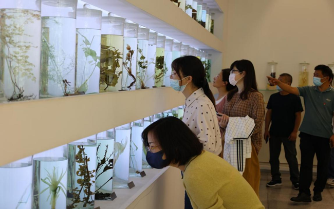 參觀廉方治未病館,以藥為引,引廉入心。在中醫藥文化、云臺山百草標本、中藥飲片展廳,通過講解員條理清晰、生動形象的介紹,結合展廳內的圖片、標本、實物展覽,大家認真探尋中醫藥文化中蘊含的“廉方治未病”思想,感悟廉政教育和中醫藥方的辯證思維,更加深刻地體會廉政文化的真正內涵。