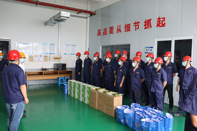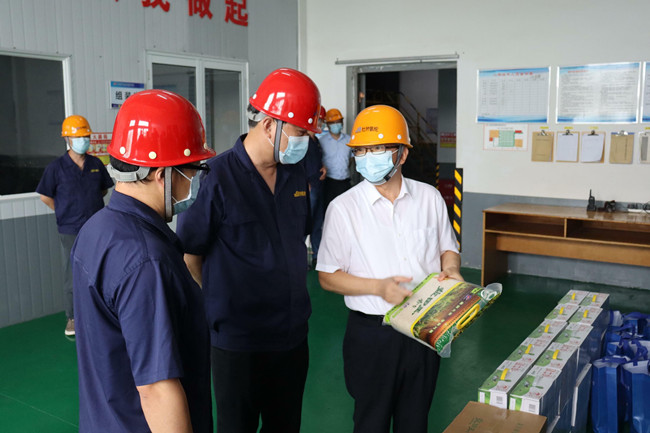 7月19日,集團公司黨委書記、董事長丁銳來杜鐘氨綸公司走訪慰問高溫下奮戰在一線崗位的廣大職工,送去防暑降溫物品和親切慰問。