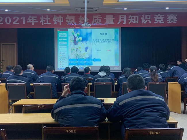 12月28日下午,為檢驗質量月活動成效,杜鐘氨綸公司于多功能廳舉辦“質量月”綜合知識競賽。