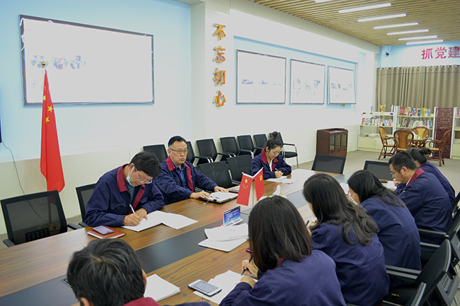 10月13日下午,杜鐘氨綸公司黨委召在黨員活動室召開2020年四季度黨建工作例會,公司黨委書記趙萬明、各黨支部負責人參加了會議。