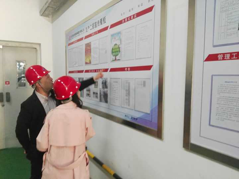 考察組一行實地考察了我公司廠區宣傳欄、展廳、七期生產現場、食堂、道德講堂、辦公樓等現場,對公司創建文明單位氛圍營造工作進行了檢查,隨后在公司一號會議室聽取了我公司文明單位申報工作情況匯報并查閱了相關臺賬資料。