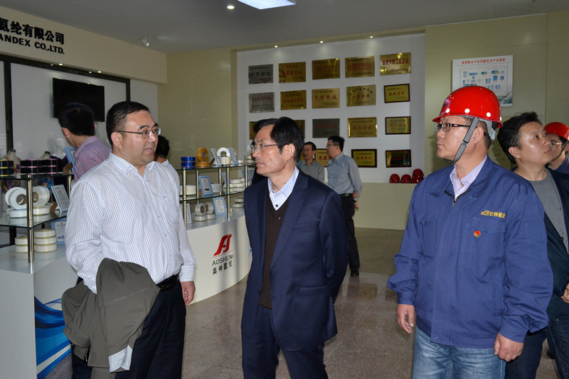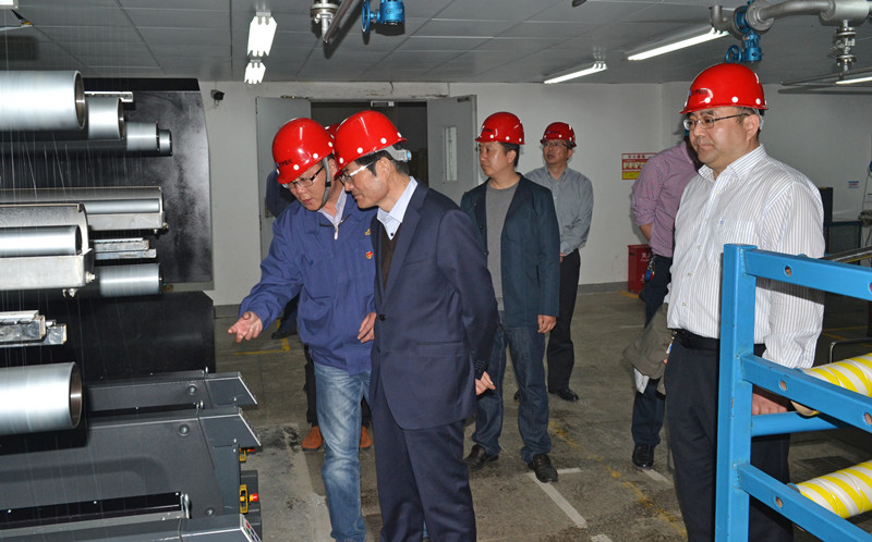 徐丙超主任一行先后參觀了公司展廳、七期生產(chǎn)現(xiàn)場(chǎng)、倉(cāng)庫(kù)等地,聽取了企業(yè)介紹,并饒有興趣地詢問了解了關(guān)于氨綸生產(chǎn)工藝、流程、市場(chǎng)、應(yīng)用等方面的信息。