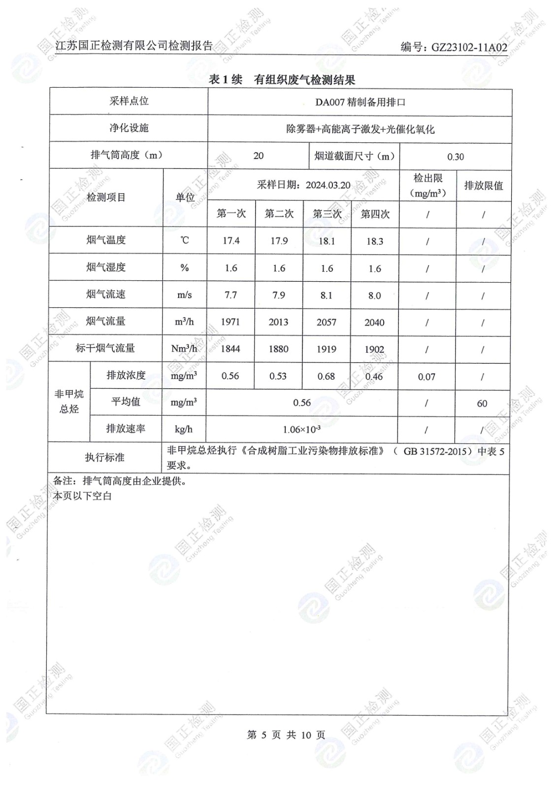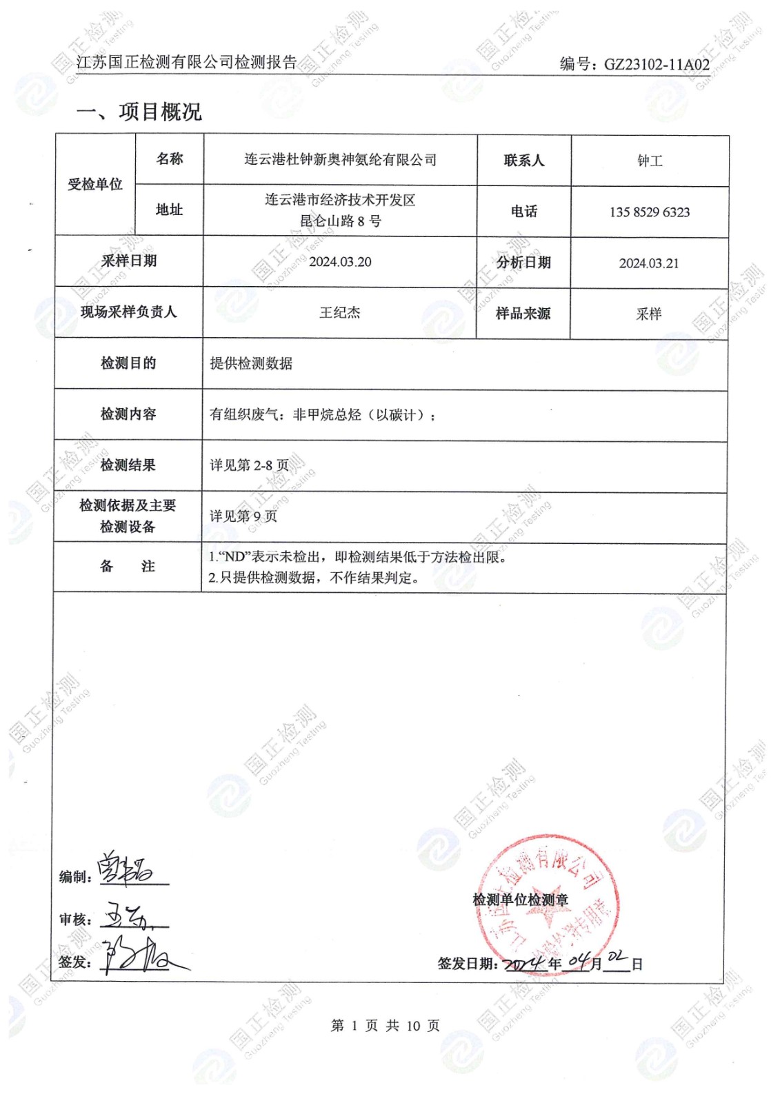 杜鐘氨綸2024年3月檢測杜鐘年排污檢測報告
