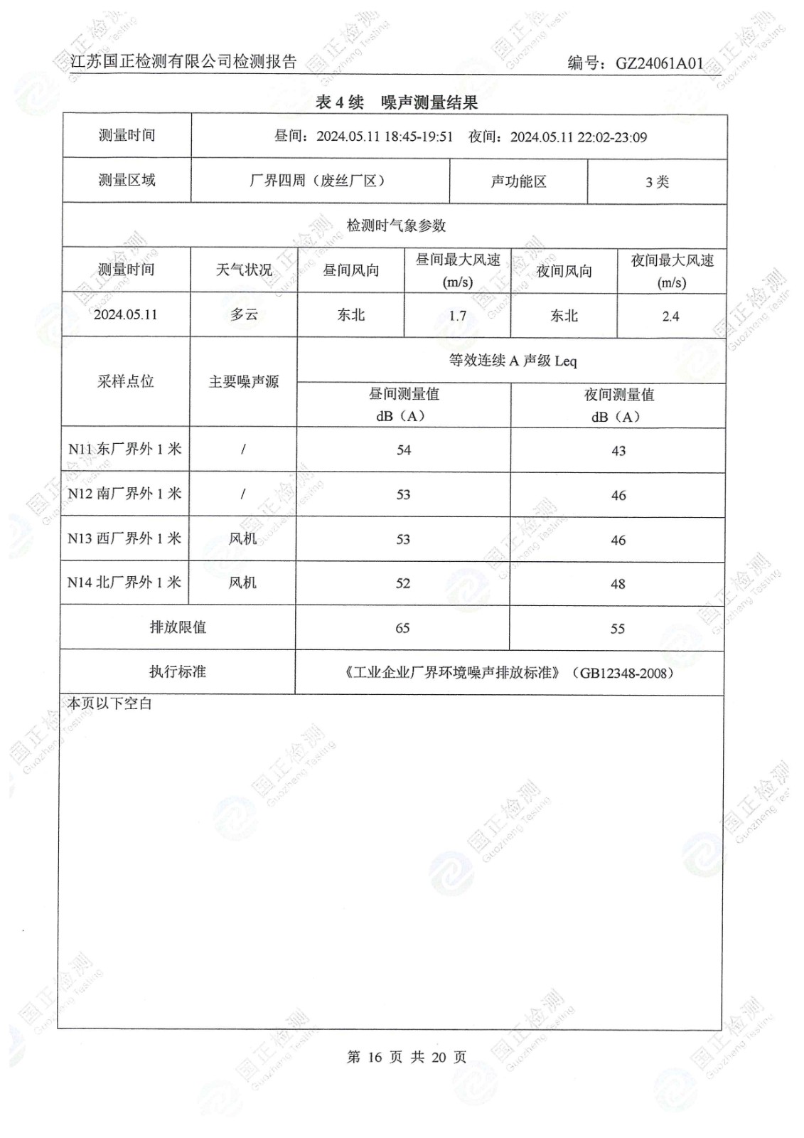 杜鐘氨綸2024年5月排污檢測報告