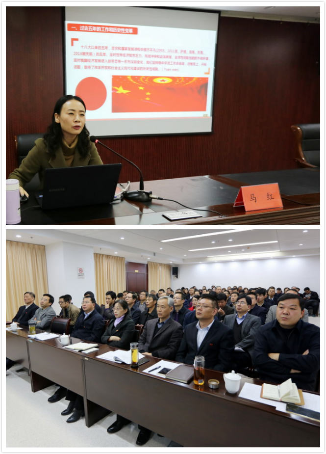 本場(chǎng)報(bào)告會(huì)邀請(qǐng)市委黨校沿海開發(fā)研究室副教授馬紅主講。馬紅教授以《不忘初心,牢記使命,為實(shí)現(xiàn)中華名族偉大復(fù)興的中國(guó)夢(mèng)不懈奮斗!》為主題,從鮮明主題、歷史性變革、主要矛盾的深淵影響、兩個(gè)一百年奮斗目標(biāo)、全面從嚴(yán)治黨等13個(gè)方面出發(fā),引用了古今中外大量案例,配合通俗的語(yǔ)言和生動(dòng)的幻燈片,系統(tǒng)而詳實(shí)地向在座黨員介紹了“黨的十九大報(bào)告”精神與內(nèi)涵,并結(jié)合經(jīng)濟(jì)建設(shè)的相關(guān)內(nèi)容,給我公司的發(fā)展提出了寶貴意見。