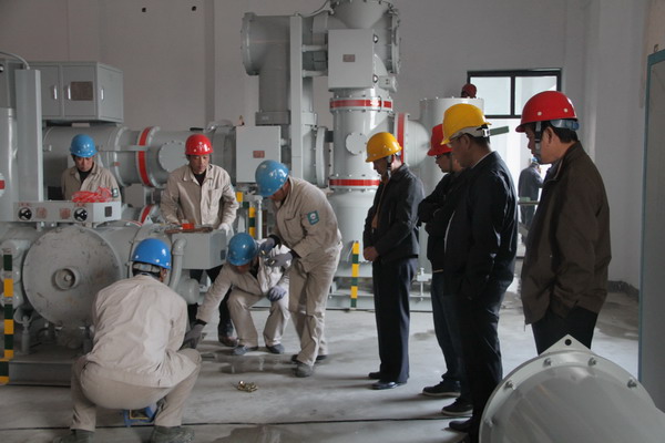 范總認(rèn)真檢查了施工情況,聽取了工程部負(fù)責(zé)人的匯報(bào),并對(duì)工程施工提出了希望和要求。范總指出,利海化工項(xiàng)目是集團(tuán)公司重點(diǎn)工程,110KV變電站更是重中之重;在土建未完成、進(jìn)場(chǎng)條件不具備的情況下,我們?nèi)匀灰朔刂乩щy,保安全、搶時(shí)間、趕進(jìn)度;要做好建設(shè)單位、土建施工單位、設(shè)備廠家的協(xié)調(diào)工作。范總強(qiáng)調(diào),利海化工變電工程是公司從10KV到110KV的一次歷史性跨越,要抓住機(jī)遇,以積累施工經(jīng)驗(yàn)、鍛煉隊(duì)伍為主,實(shí)現(xiàn)施工技術(shù)、施工組織和施工管理大提升。要努力鉆研業(yè)務(wù),確保工程質(zhì)量一流,確保兩個(gè)月順利竣工,力爭(zhēng)提前完工,不拖利海化工項(xiàng)目整體竣工進(jìn)度,為其早日開工建設(shè)、盡快投產(chǎn)達(dá)效提供可靠的電力保障。