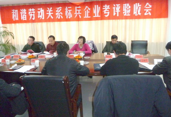 12月22日下午,在集團公司工會副主席盧同根陪同下,市總工會副主席許東方率領市創建和諧勞動關系標兵企業考評組一行4人,對公司創建工作進行考評驗收。
