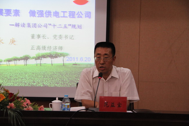 6月20日下午,集團公司董事長、黨委書記顧永庚來到公司作了題為“集聚集團發展要素,做強供電工程公司”的專題報告,報告會由公司總經理、黨委書記范益寶主持。公司領導班子及副科級以上管理人員聆聽了報告。
