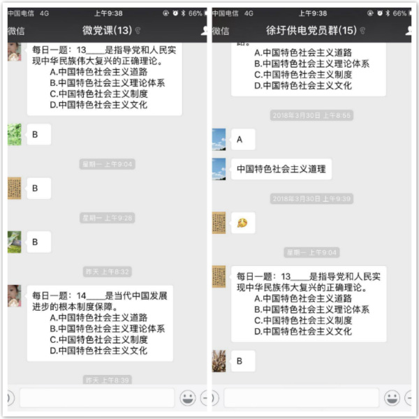 為促進(jìn)黨員更好的了解十九大精神,切實(shí)做到學(xué)懂弄通做實(shí),公司黨委充分發(fā)揮微信網(wǎng)絡(luò)平臺(tái)靈活便捷、互動(dòng)性強(qiáng)的優(yōu)勢,開展了“微考堂”“每日一題”學(xué)習(xí)活動(dòng)。公司黨群工作部每日通過微信群出題,大家搶答。題目緊扣十九大會(huì)議精神、習(xí)總書記講話精神、新黨章等重點(diǎn)內(nèi)容,并定期組織黨員開展網(wǎng)絡(luò)答題考核,確保黨員真學(xué)真做。(電宣)