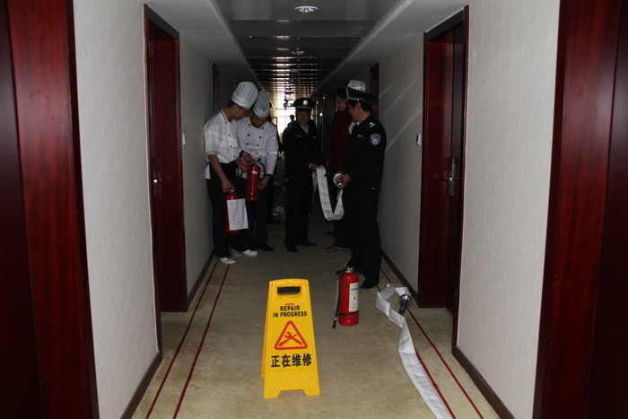 一是增強全員消防意識。要求酒店全體從業人員必須做到兩知三會,即知防火知識,知滅火常識,會報火警,會自救逃生,會協助救援。同時張貼消防安全“四個能力”的海報,發放“四個能力”建設的資料給員工熟記,在區消防部門協助下,加強對員工消防知識培訓。