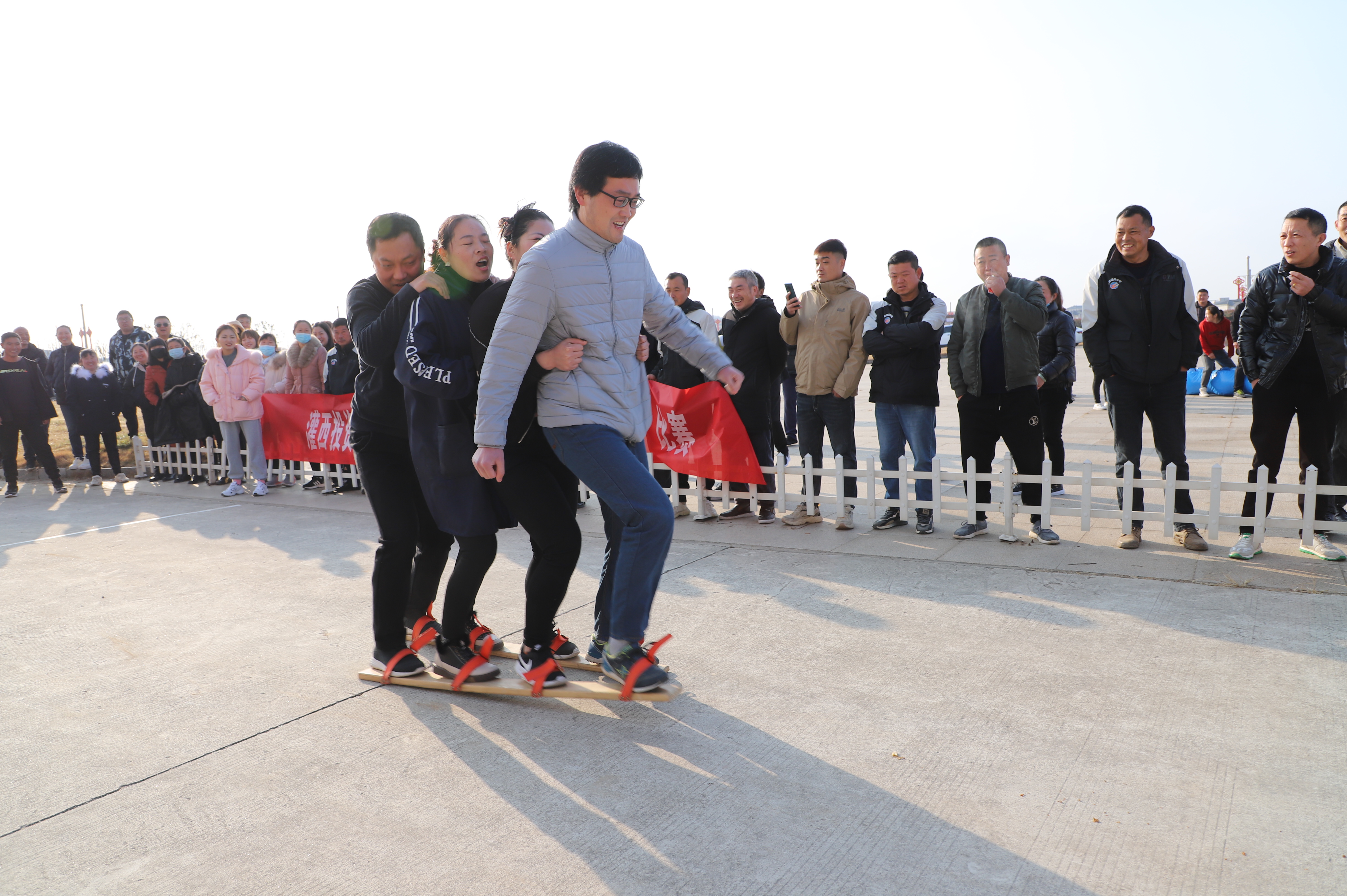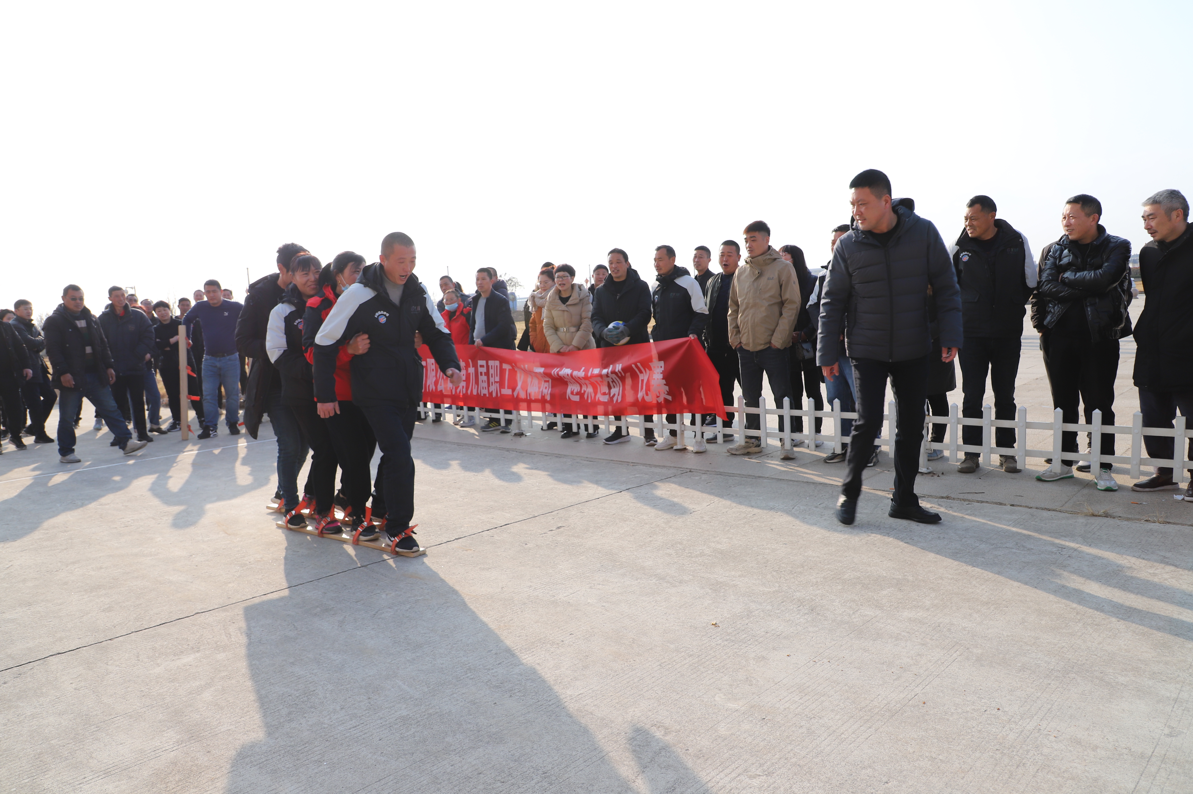 12月23日上午,投資公司第九屆職工文體周趣味運動比賽在機關(guān)大樓廣場開賽,公司各單位組織十支隊伍參加比賽,考驗著各參賽隊選手之間配合與協(xié)調(diào)性。缺少默契的隊伍,沒走幾步就人仰馬翻,反觀配合默契的隊伍一往直前,奔向終點。新河制鹽分公司代表隊隊員的運動鞋被同伴踩掉,依然沒有放棄比賽,赤著一只腳完成了比賽,充分體現(xiàn)了團(tuán)隊精神,也充分展示了灌西職工的良好精神風(fēng)貌。