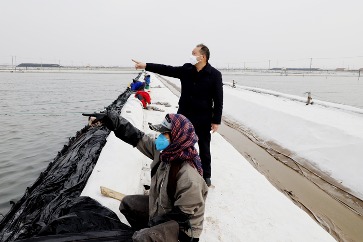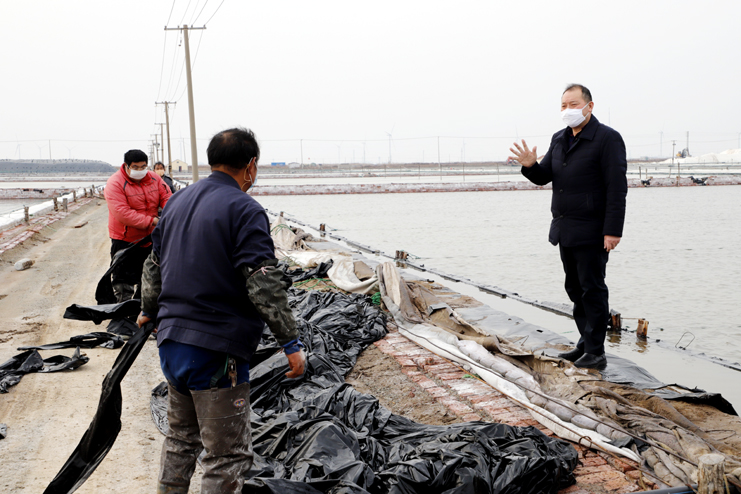 李國(guó)文首先來(lái)到日曬制鹽公司生產(chǎn)灘頭,現(xiàn)場(chǎng)察看復(fù)工復(fù)產(chǎn)情況。徒步灘頭,有的在補(bǔ)塑布、有的在修整廩基、有的在更換塑布,每個(gè)班組都在搶抓時(shí)間準(zhǔn)備春扒工作。隨后李國(guó)文先后前往西旺養(yǎng)殖池塘、明威田頭、宵洋物流碼頭,每到一處都詳細(xì)詢問職工口罩、消毒酒精等防護(hù)物資夠不夠用,有沒有外地回來(lái)的員工,并叮囑員工少接觸外地回來(lái)人員,錯(cuò)開上下班時(shí)間,外出要帶口罩,保護(hù)好自己才能更好的為企業(yè)創(chuàng)造效益。