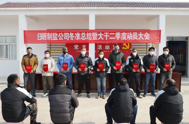 3月18日,日曬制鹽公司在新河制鹽分公司生產灘頭召開冬準總結暨大干二季度動員大會,黨委書記、董事長、總經理李國文主持會議并講話,為完成2020年各項生產工作再動員、再發力、再部署、再出發,幫失去的時間搶抓回來。常務副總經理古浩光對冬準工作進行了全面總結,并對二季度工作進行了安排部署。黨委副書記、紀委書記、工會主席王宏宣讀了冬準勞動競賽表彰決定和大干二季度勞動競賽方案。