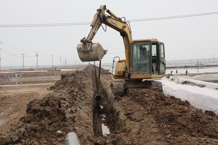 4月5日上午,日曬制鹽公司灘頭機(jī)械轟鳴,兩臺挖掘機(jī)正按照事先分工,有序的將深埋在地下的廢舊除硫管道挖掘出來。據(jù)了解,這些廢舊除硫管道按照原先設(shè)計(jì),主要用于承擔(dān)鹵水除硫后的輸送工作,后因生產(chǎn)工藝的改進(jìn),導(dǎo)致管道一直處于閑置狀態(tài)。而此次回收并再次利用這些管道主要是為了在進(jìn)一步改進(jìn)生產(chǎn)工藝的基礎(chǔ)上,最大化節(jié)約生產(chǎn)成本。據(jù)介紹,目前日曬制鹽公司在生產(chǎn)中主要采取串聯(lián)式加鹵的方式進(jìn)行,除硫后的鹵水無論輸送至哪一格塊,都必須按照先后順序依次經(jīng)過前排格塊,這不僅大大降低了輸送效率,也不利于對鹵水的有效管理,更造成了一部分浪費(fèi)。相比較而言,通過改串聯(lián)式加鹵為并聯(lián)式加鹵后,鹵水將會從除硫池直供缺鹵格塊,在提高供鹵效率的同時(shí),也能夠有效降低跑冒滴漏現(xiàn)象的發(fā)生。