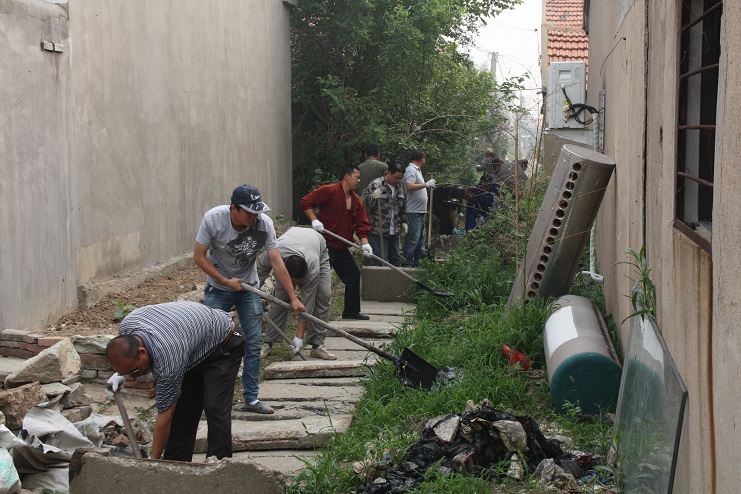 早上7點,各單位黨員職工們就已經集合完畢,新河、埒南兩個制鹽分公司的職工們更是早在清晨5點多就開始清掃責任區衛生。在勞動現場,黨員職工們揮舞著攜帶的鐵鍬,耙子,鐮刀等工具,按照分配好的片區,在整個中二圩地區展開了衛生大治理工作。他們有的在清理排水溝渠,有的在進行除草,有的在為居民清理下水道,整個大行動現場一片熱熱鬧鬧的繁忙景象。機電服務公司負責的片區內,黨員職工們或是手持撬棍掀開下水道蓋板,或是拿著鐵鍬清理排水溝道;實業公司和宵洋物流公司負責片區內,黨員職工不顧池塘內的異味,奮不顧身的撐著木筏進行清理;已到耄耋之齡的退休老黨員劉保花奶奶,也揮舞起鐵锨,加入到清除隊伍中來……一幕幕感人的場景,鼓舞著黨員職工們的干勁。通過一上午的活動,中二圩的溝道疏通了,路面也更加整潔了。