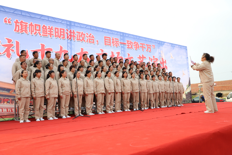 “沒有共產黨就沒有新中國……”14點30分,演出在激昂的《沒有共產黨就沒有新中國》大合唱中拉開序幕。并不晴朗的天空絲毫沒有阻礙職工們觀看演出的熱情,“今天是你的生日,我的中國,清晨我放飛一群白鴿……”合唱團的一曲《今天是你的生日》唱出了灌西人“旗幟鮮明講政治,實現綜合利潤一千萬”的政治擔當。演出共分為旗幟鮮明講政治、擼起袖子加油干、魅力灌西展新篇三個樂章,《美麗的心情》沁人心脾,仿佛蕩漾陶醉在歌聲里。精彩的魔術、雜技贏得了現場觀眾喝彩聲和多次掌聲。《東北搞笑二人轉》樂的大家笑聲開懷,前仰后合。配樂詩朗誦《魅力灌西夢》,向大家展示了灌西將在“十三五”末奮力實現“經濟強”、“職工富”、“環境美”、“素質高”的“強富美高”“魅力灌西”的夢想。廣場舞《擼起袖子加油干》、《張燈結彩》更是生動體現了灌西人民熱愛生活、積極向上的精神面貌,讓觀眾們看得津津有味。