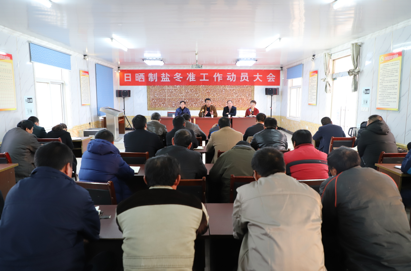 會(huì)前,與會(huì)人員一起現(xiàn)場參觀了新河制鹽分公司零班做格堰,三班清理硫酸鈣和土塘清淤等冬準(zhǔn)工作典型,隨后在生產(chǎn)服務(wù)公司會(huì)議室召開冬準(zhǔn)動(dòng)員大會(huì),會(huì)議對公司的冬準(zhǔn)工作進(jìn)行了全面部署,公司黨委書記、董事長王德志作形勢任務(wù)講話,總經(jīng)理李國文作動(dòng)員講話,副總經(jīng)理古浩光對冬準(zhǔn)工作提出要求,工會(huì)主席王宏宣讀了關(guān)于開展“大干冬準(zhǔn)勞動(dòng)競賽”活動(dòng)方案,新河、埒南制鹽分公司三名班組長就如何干好冬準(zhǔn)工作分別作表態(tài)發(fā)言。