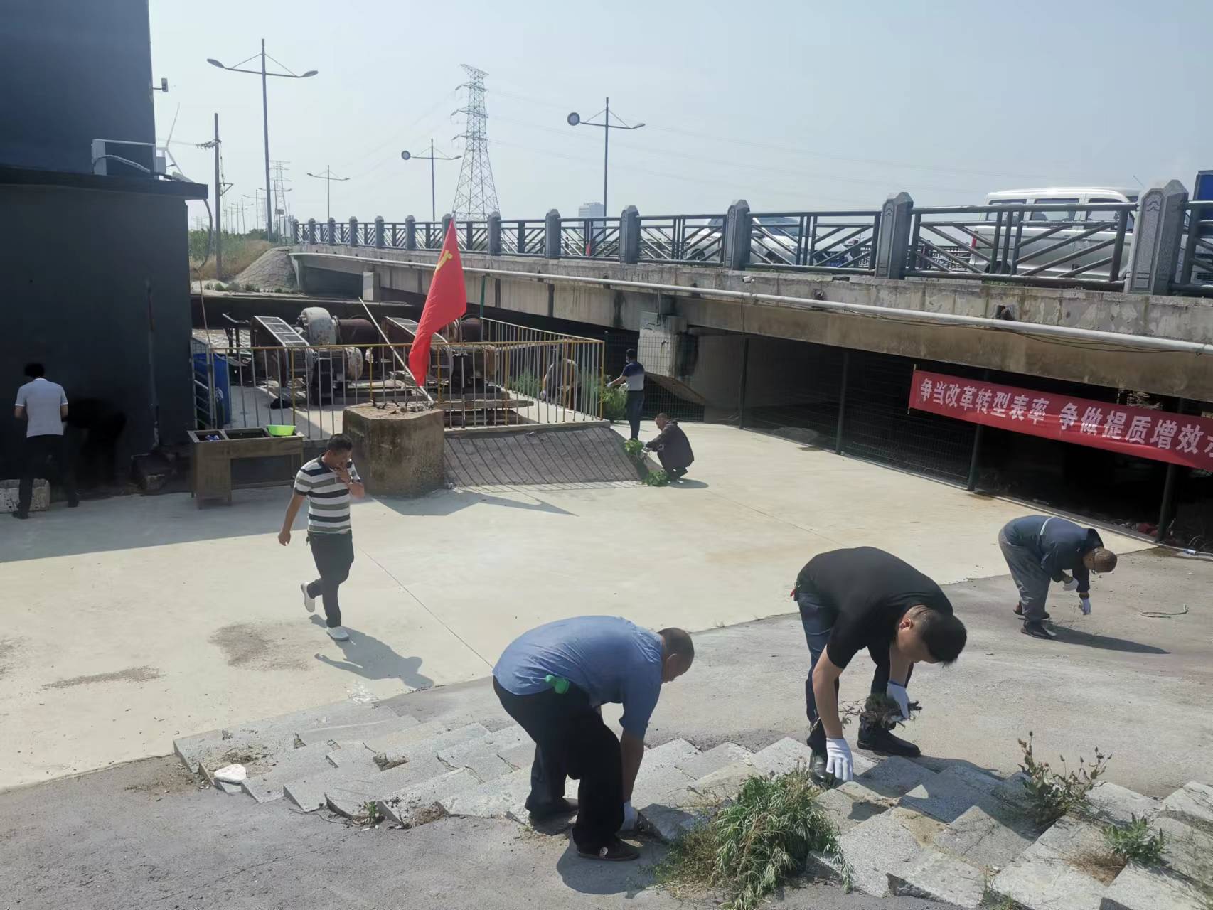以“紅心永向黨,奮進正當時”為主題開展一次黨員”集中活動日”活動。6月29日上午,資源管理中心黨支部組織全體黨員和積極分子到六圩閘清理閘站室內、外衛生。經過大家的共同努力,閘站里外的雜草、垃圾等全部清除干凈,整個閘站煥然一新。