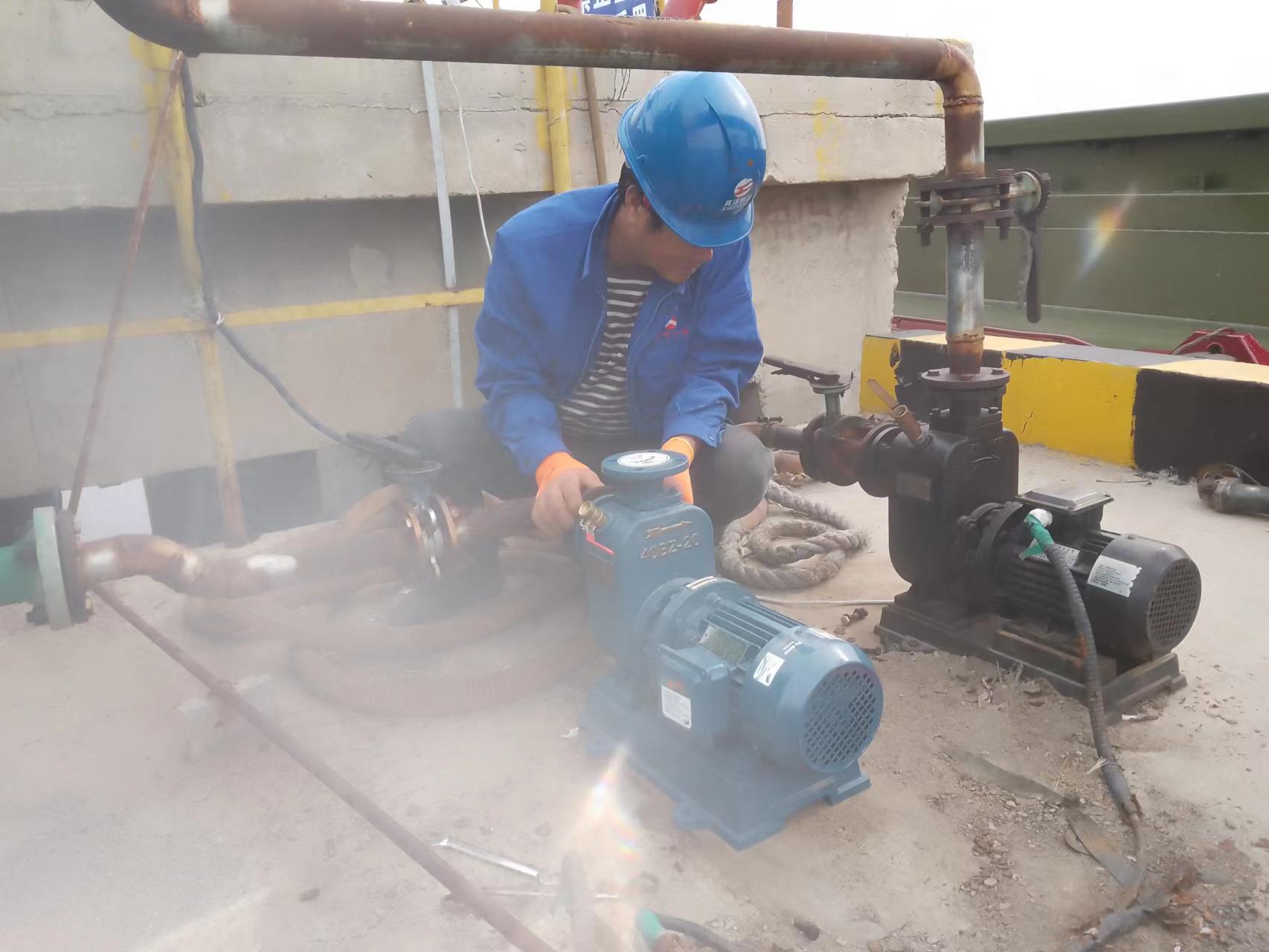 公司目前有兩臺船只生活用水污水泵,其中一臺由于停放時間轉長、銹蝕嚴重、泵體開裂,導致無法使用,為了設備正常運行,公司投資2000余元,購買一臺污水收集泵、鋼膠塑管進行重新安裝,對各種閥門及時加油潤滑。電工對電氣配電柜也進行重新調試和修復,竭盡全力為船工提供更完善的服務,滿足船只污水排放需求。目前正在試行,為內河碼頭的生態環境起到積極的推進作用(胡秀同)
