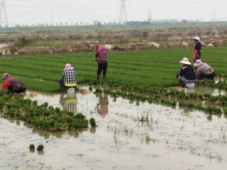 連日來,工人們克服天氣炎熱等因素,搶時間趕進(jìn)度。在明威公司稻田里隨處可見一片繁忙景象:拔秧的,捆秧的,插秧的,她們按照勻、整、齊的標(biāo)準(zhǔn),不一會兒,一排排秧苗整齊地立在了水田中,構(gòu)成一幅美麗的田園畫卷。