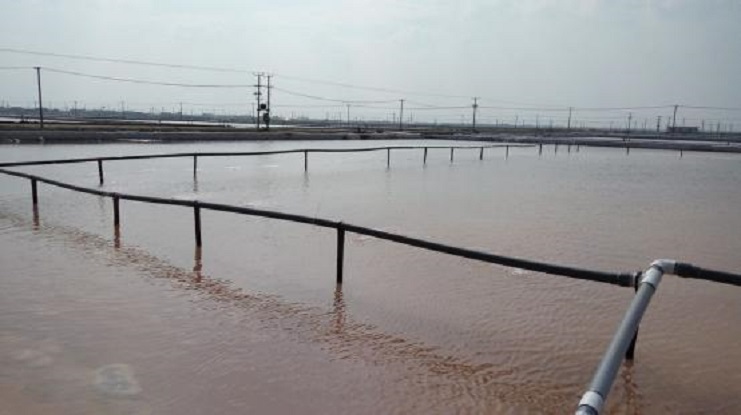 除硫是日曬制鹽制鹽工藝的特點(diǎn)、是原鹽質(zhì)量的根本保證,因加入鈣液量較小,和除硫鹵水均勻混合比較困難。盡管不少班組采用人工或者機(jī)械攪拌,終因洼站面積較大,始終不盡人意。最近,生產(chǎn)服務(wù)公司經(jīng)理劉文能同志帶領(lǐng)生產(chǎn)服務(wù)公司全體人員研究,最終決定采用農(nóng)田打滴灌溉原理。用塑料管圍繞洼站一圈,根據(jù)塑料管孔徑計算眼數(shù),使鈣液分布均勻加入,這樣鈣液和鹵水充分接觸,提高反應(yīng)速度,減少除硫時間,徹底解決除硫攪拌問題。(孫何瑜)