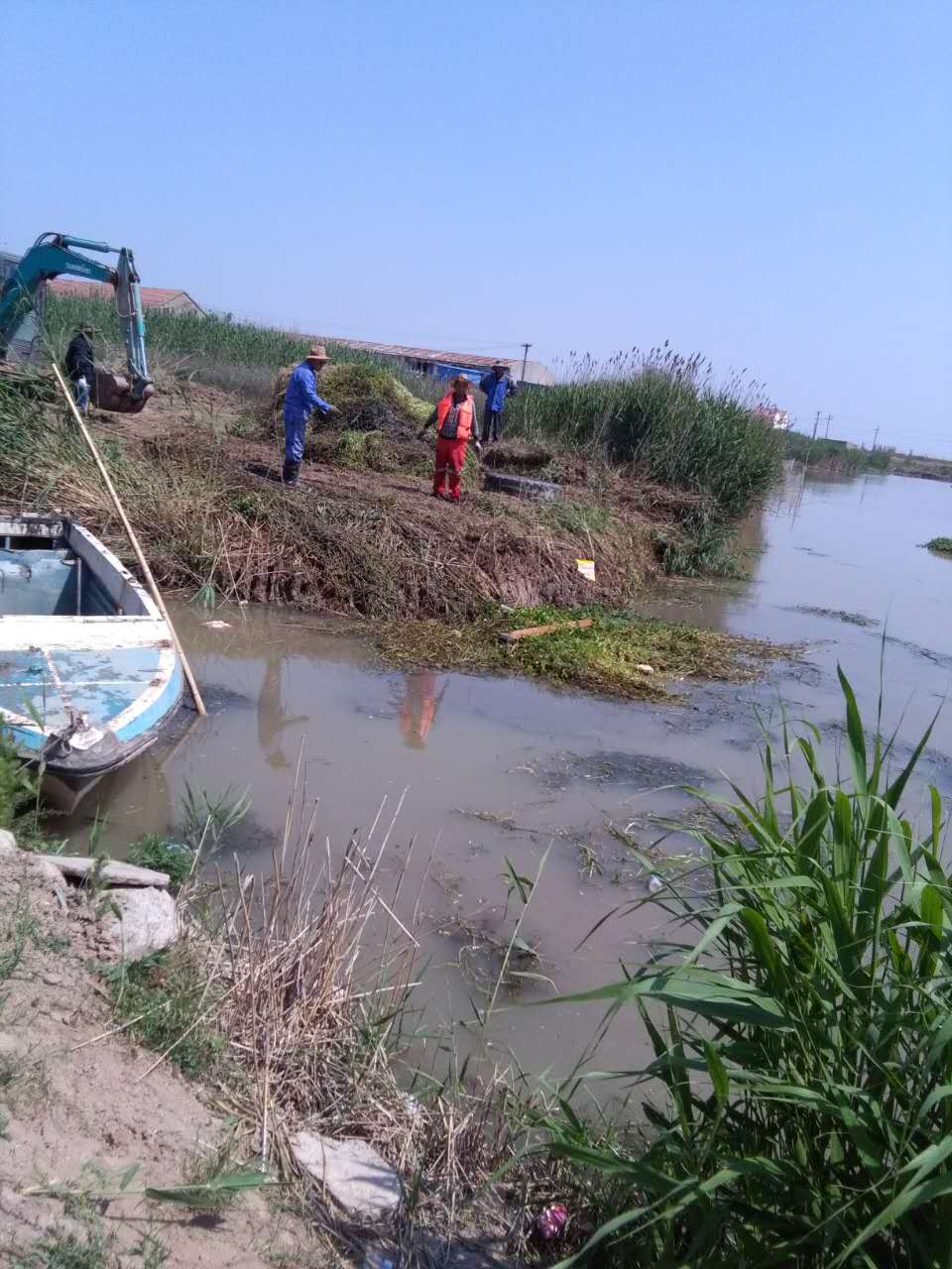 時下,正值養殖和種植用水高峰時節,為不影響養殖和種植生產的供水需求,西旺水產公司多舉措來保證用水安全。采取泵站實行全天候開機打水、事先聯系組織協調好養殖戶用水、組織清理河道渠道障礙物等措施,從而保證了泵站打水的暢通和用水的需要。圖為該公司組織人員、機械、船只等清理河道水草。(西旺宣)