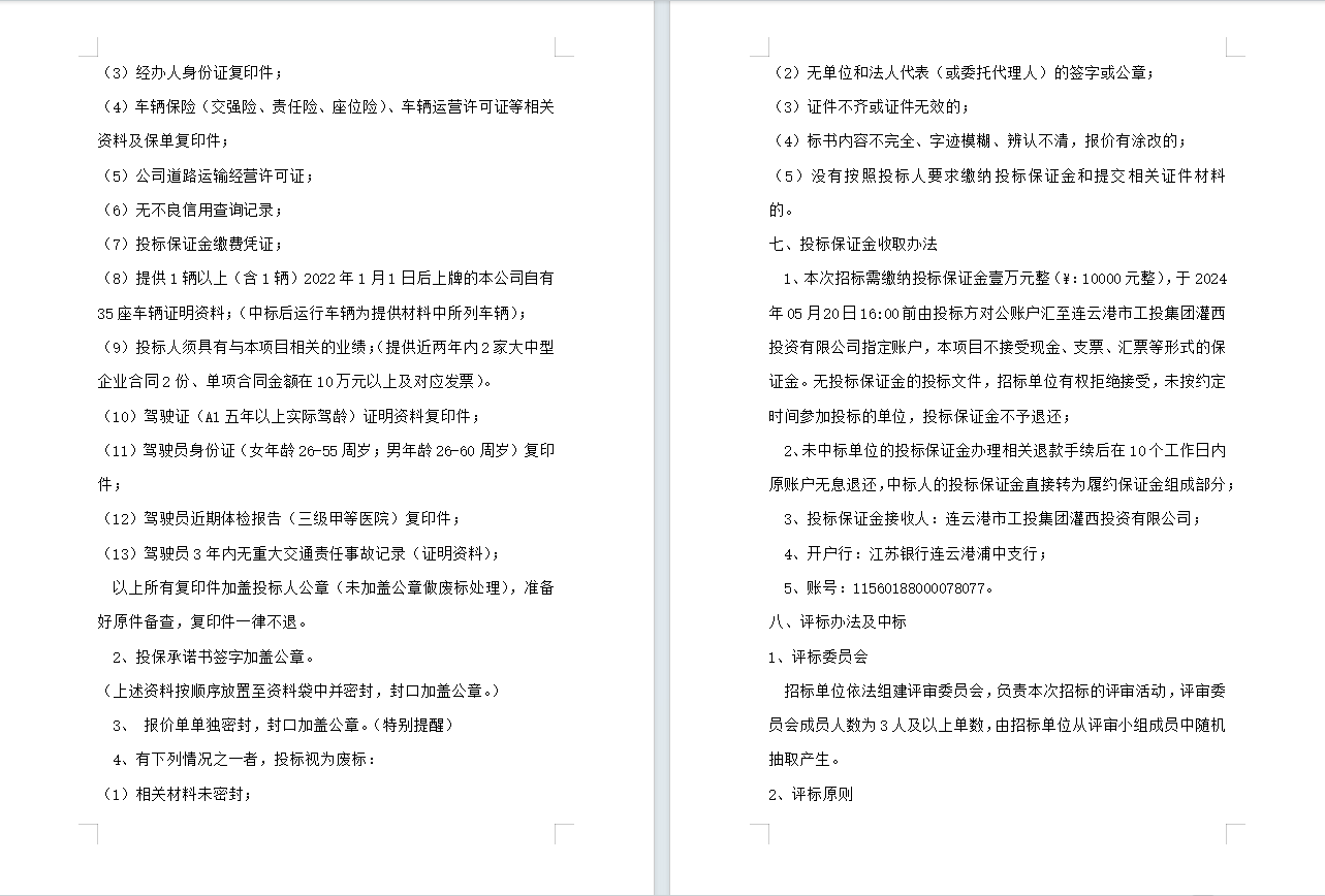 連云港市工投集團灌西投資有限公司員工上下班通勤車輛租賃項目公告