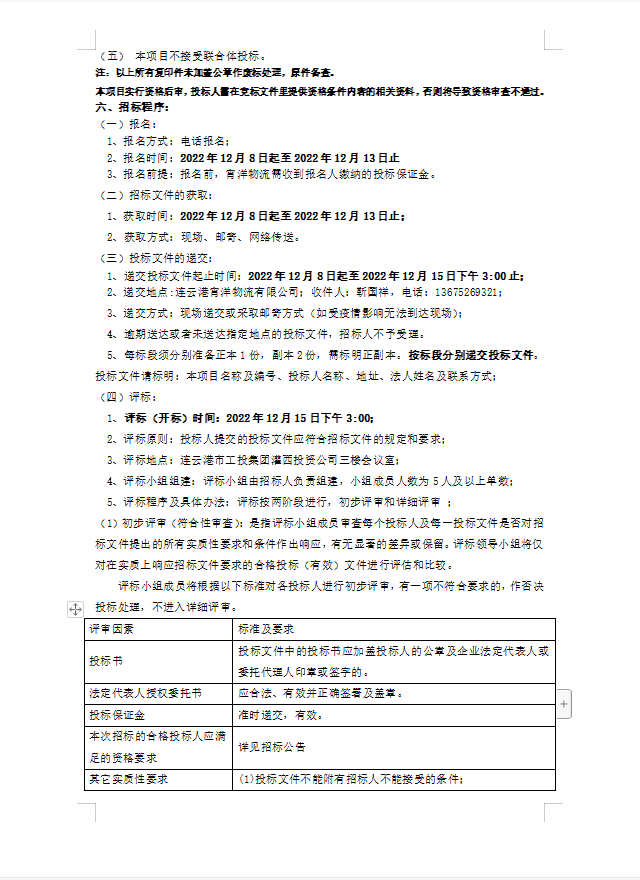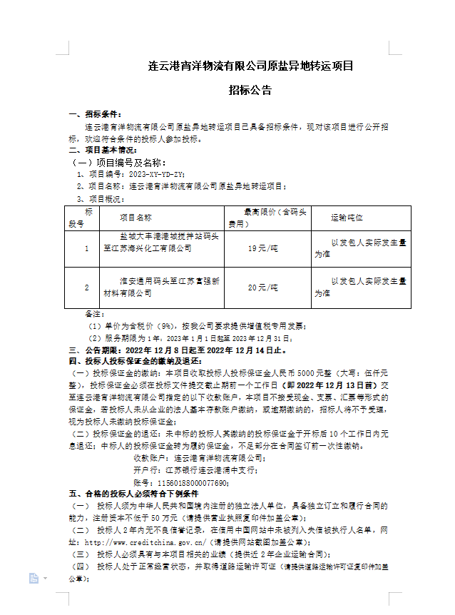 連云港宵洋物流有限公司原鹽異地轉(zhuǎn)運項目招標公告