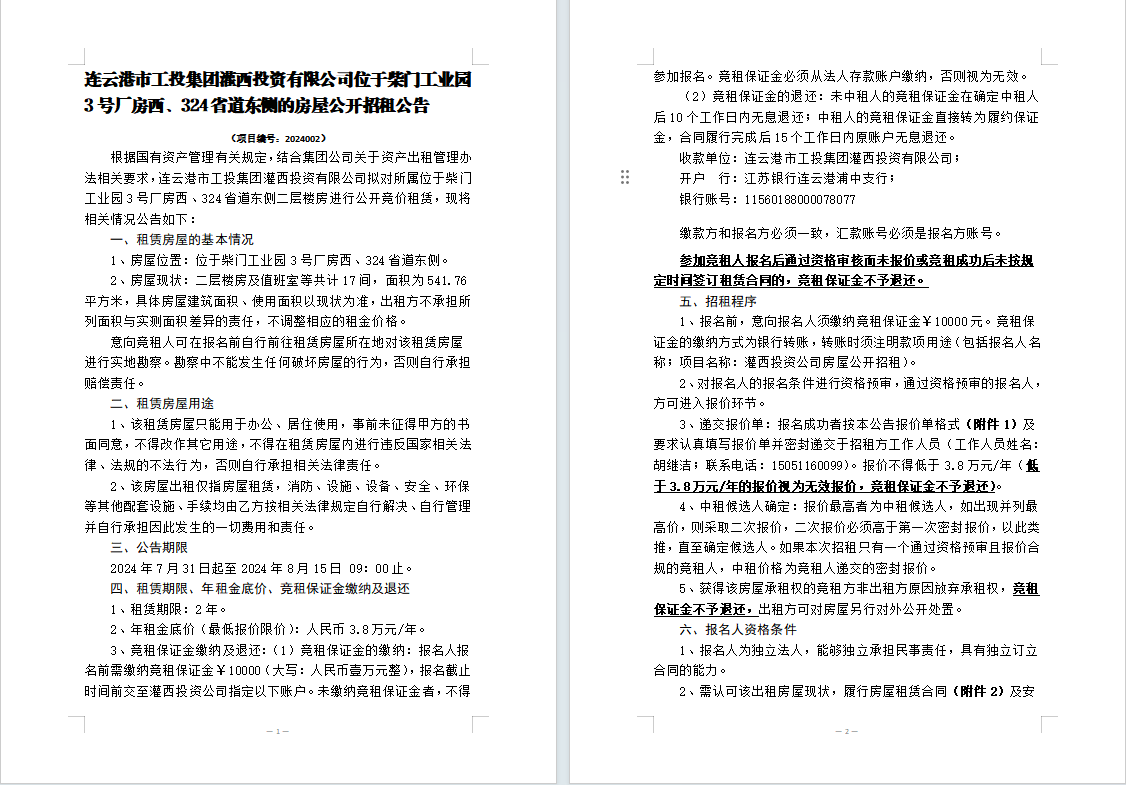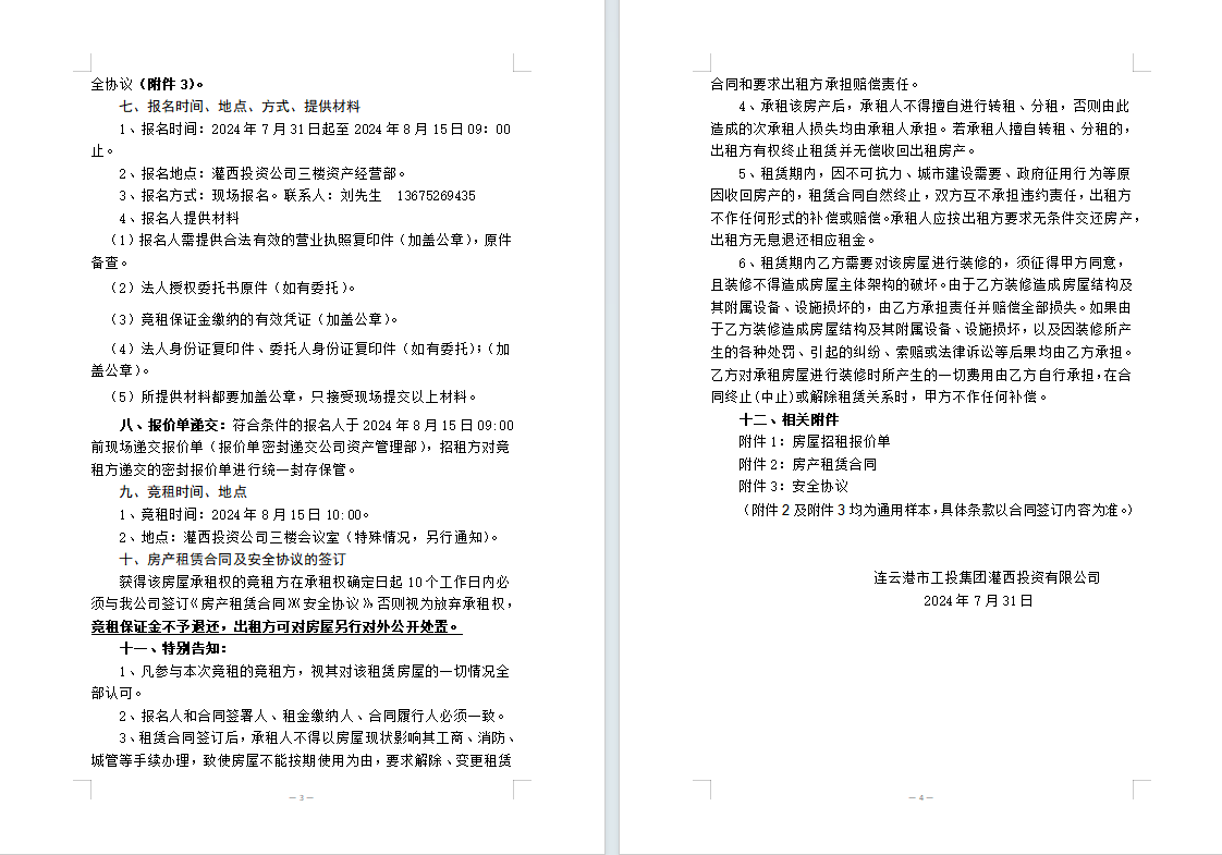 附件1:房屋招租報價單