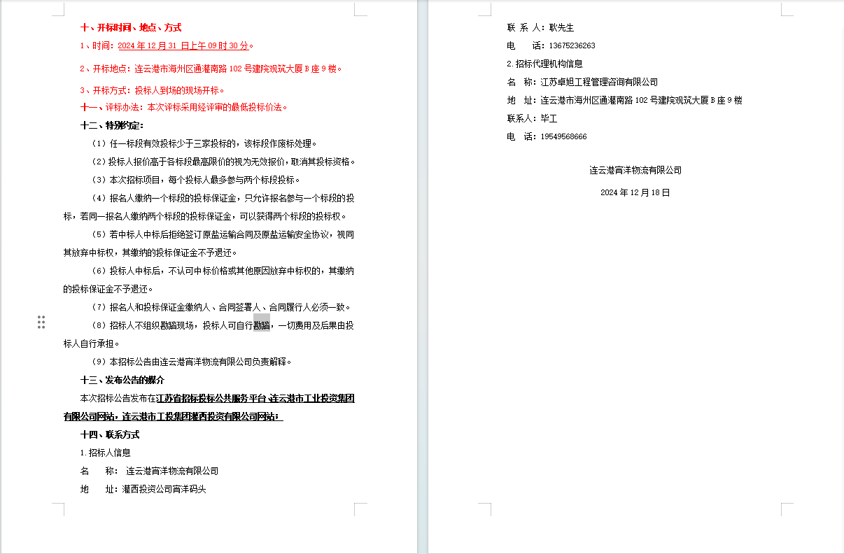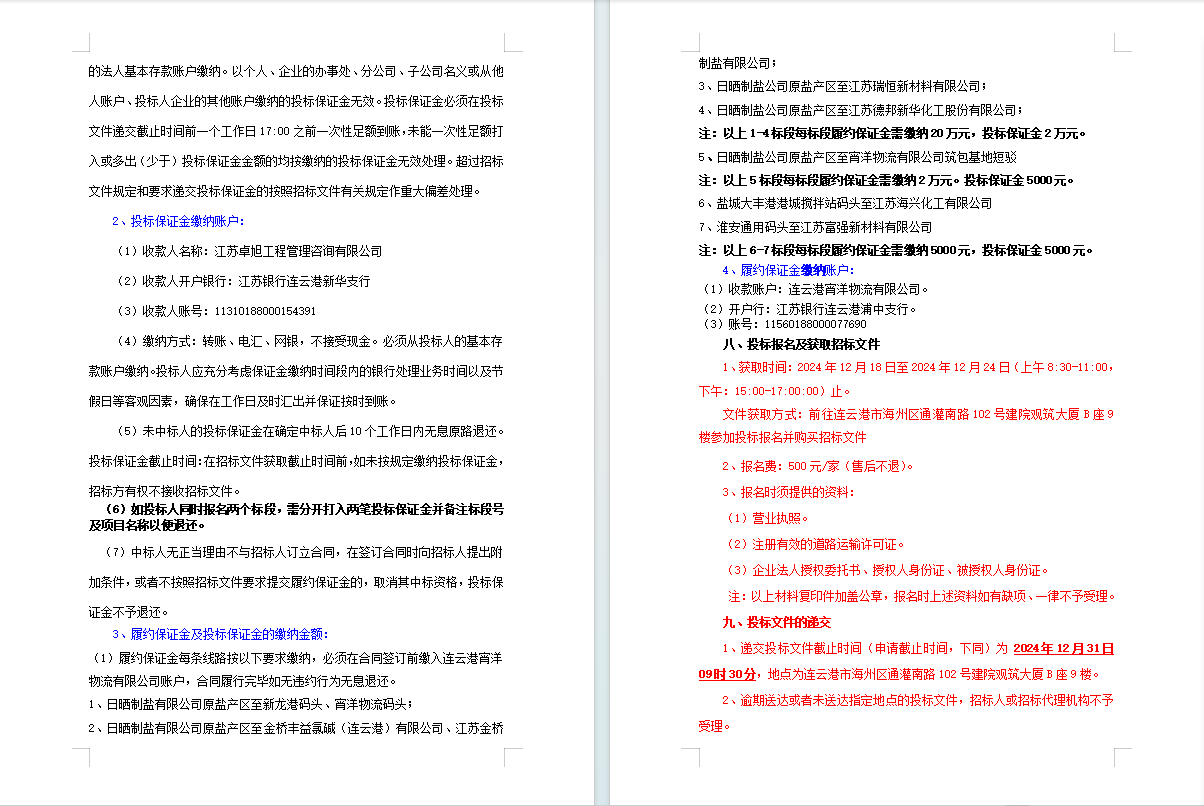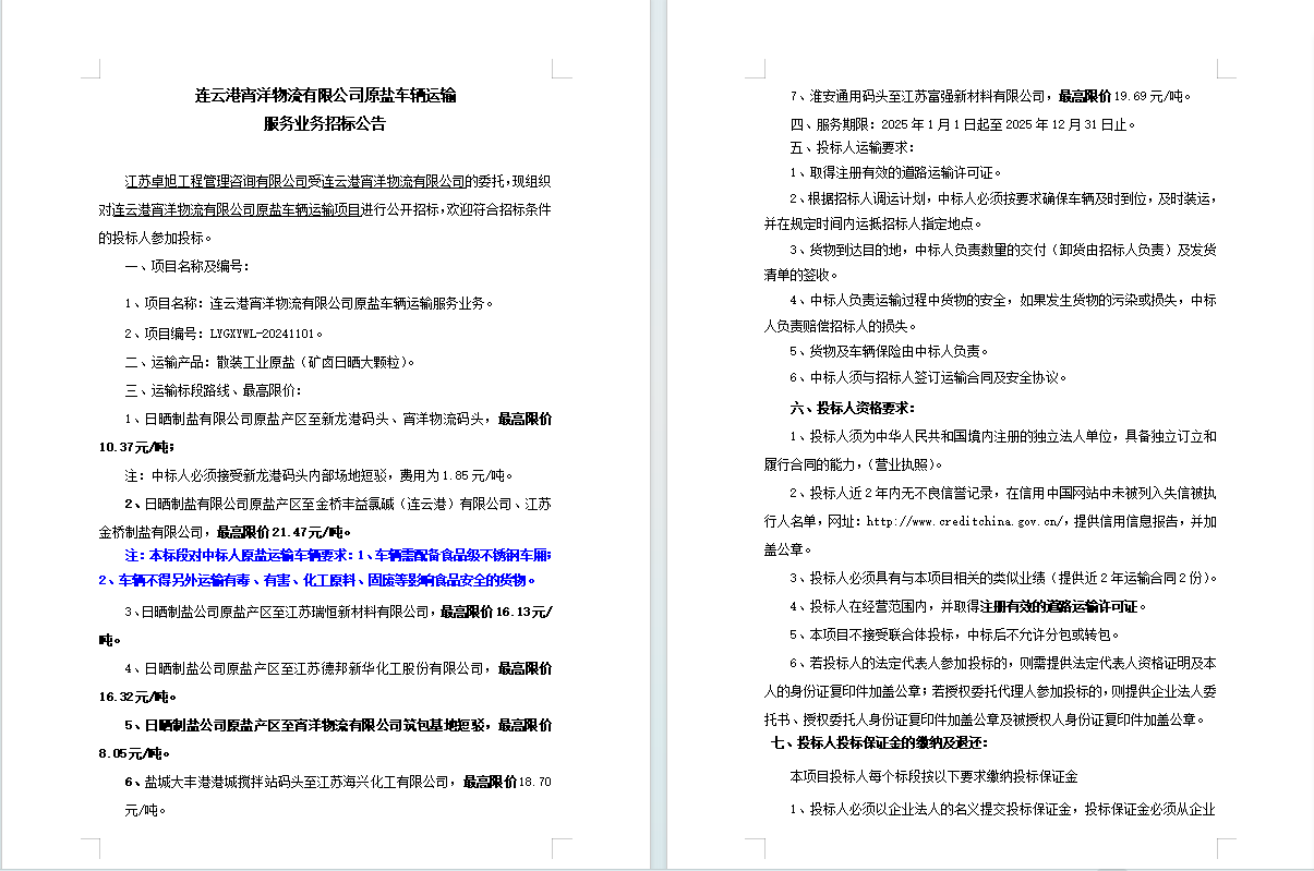 連云港宵洋物流有限公司原鹽車輛運輸服務業務招標公告
