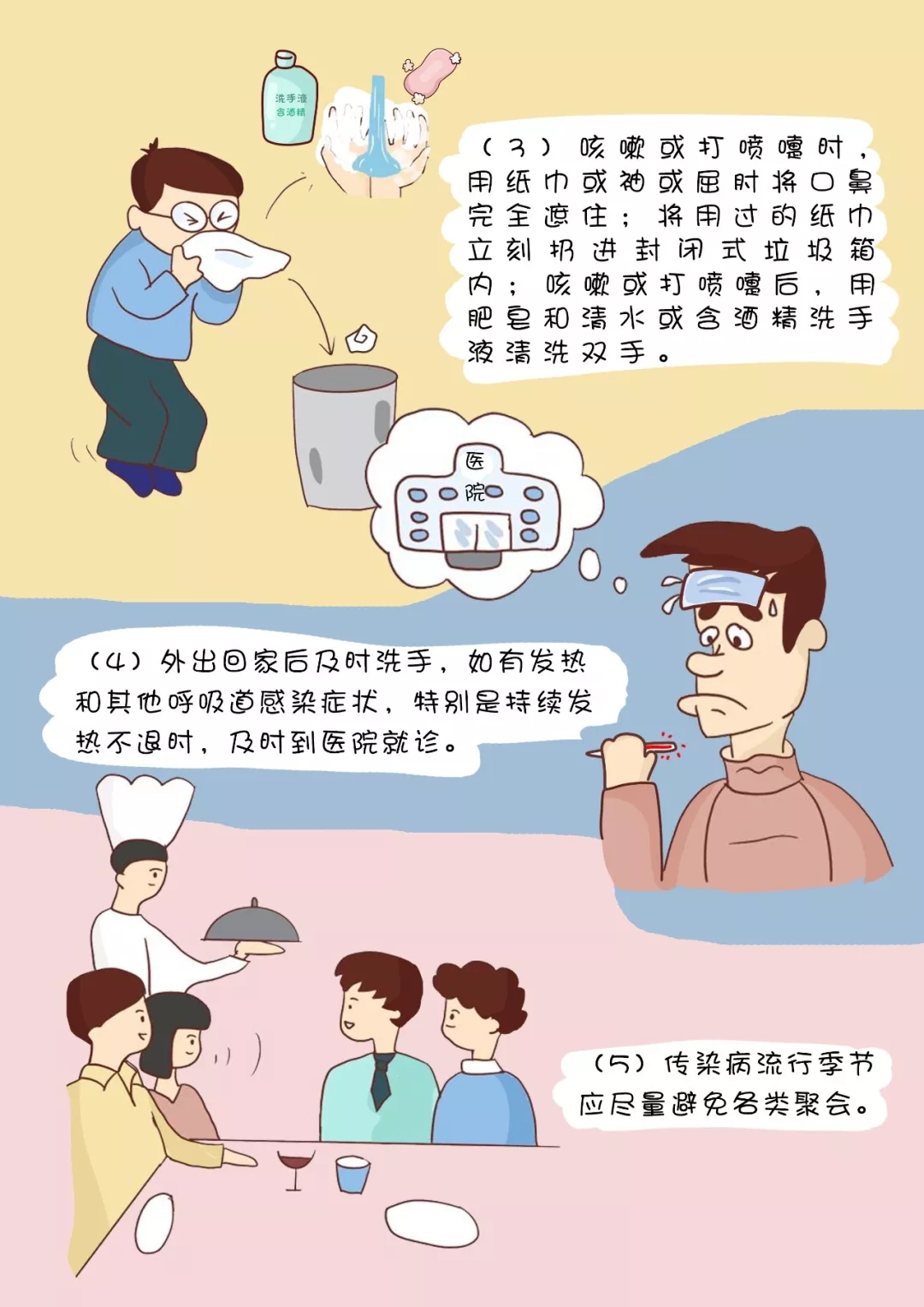 (5)傳染病流行季節(jié)應(yīng)盡量避免各類聚會。