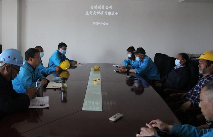5月26日,我公司召開屋面更新項目推進會。公司副總經理李忠祥、相關部門負責人、施工方代表和監理方代表參加會議。