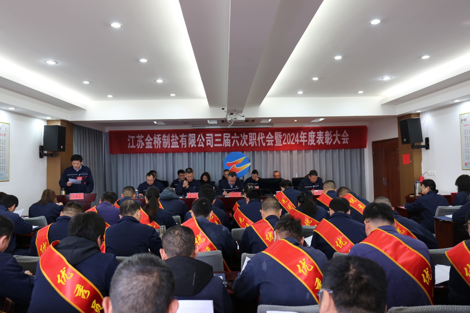 1月23日,金橋制鹽公司隆重召開(kāi)三屆六次職代會(huì)暨2024年度表彰大會(huì)。來(lái)自公司各條戰(zhàn)線的45名代表忠實(shí)履行職責(zé),積極獻(xiàn)計(jì)獻(xiàn)策,共商發(fā)展大計(jì)。公司黨委書(shū)記、董事長(zhǎng)田磊作講話。公司常務(wù)副總經(jīng)理薛化光作《工作報(bào)告》。公司黨委副書(shū)記、紀(jì)委書(shū)記、工會(huì)主席袁忠主持大會(huì)。