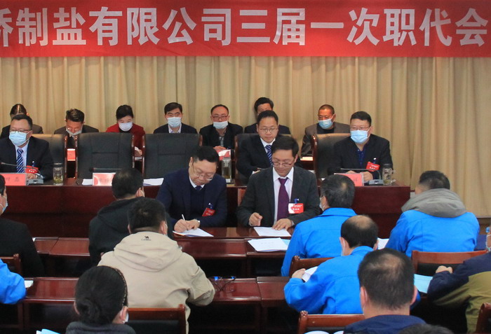大會簽訂了《2021年度集體合同》、《2021年度經營認標責任書》,與會代表認真審議通過了總經理工作報告,通過了大會決議、有關方案和意見。加工鹽車間、包裝鹽車間、銷售部依次作了表態發言。大會表彰了第九屆“金橋杯”勞動競賽、2020年“大干四季度”勞動競賽的先進集體和先進個人以及2020年度“金橋工匠”。(金宣)