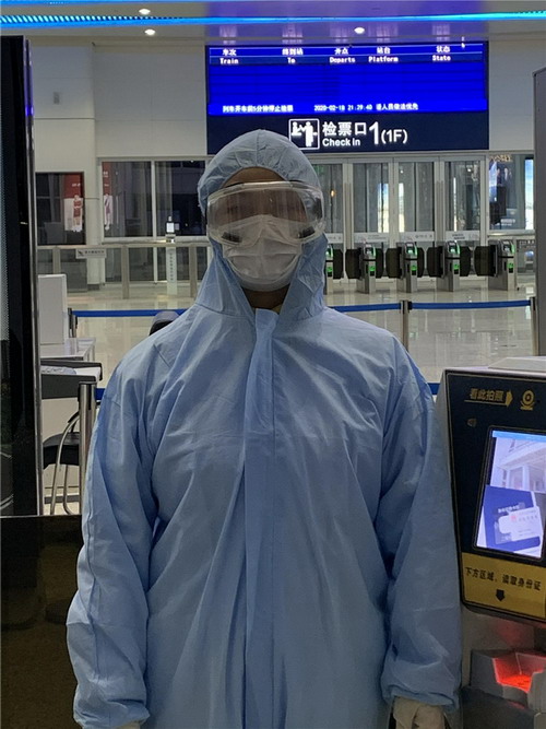 一天晚上,進(jìn)站口急匆匆來(lái)了一個(gè)女孩拖著3個(gè)大箱子,就差幾分鐘列車(chē)就要開(kāi)了,女孩急著說(shuō),完了完了,趕不上火車(chē)了,朱詠梅協(xié)助醫(yī)護(hù)人員幫她測(cè)完體溫,顯示正常,朱詠梅拿起她的行李,幫助她進(jìn)行箱包檢查,檢票、上、下電梯……女孩一邊跑一邊和她說(shuō),她是去英國(guó)上學(xué)的,因這次疫情的影響,已經(jīng)3次被改簽了,如這次趕不上列車(chē),可能再也沒(méi)有機(jī)會(huì)去上學(xué)了;朱詠梅在列車(chē)開(kāi)動(dòng)前把她送上了車(chē),女孩對(duì)她連聲感謝……