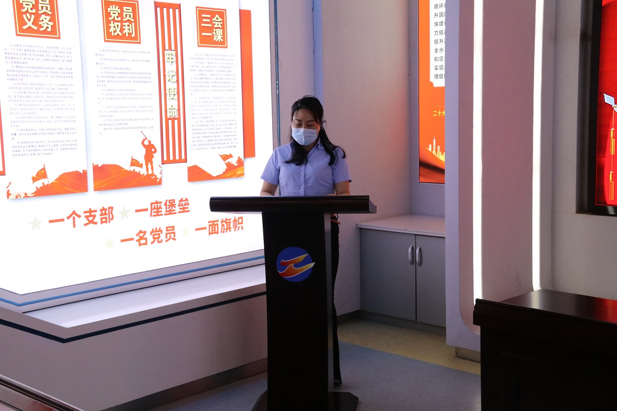 隨后,支部書記徐兵為大家上了一堂題為“增強黨性修養(yǎng),筑牢使命擔當”的專題黨課,他結合黨的歷史及當前國內(nèi)國際局勢,生動的闡釋黨的革命精神和光輝歷程,旨在讓新黨員感受到了黨的神圣,進一步激發(fā)黨員的愛國熱情和奮斗精神,激勵廣大黨員黨員以自身的實際行動積極實踐誓詞,這堂黨課對于新老黨員們來說,都是一次寶貴的學習機會。黨課最后,支部書記徐兵帶領新老黨員一起,面向鮮紅的黨旗,舉起右拳,重溫入黨誓詞。