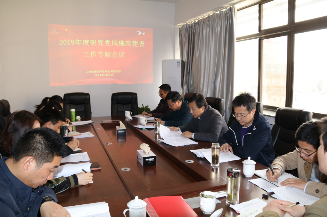 48日,資產管理公司黨支部召開黨風廉政工作專題會議,研究部署2019年黨風廉政建設工作,支部書記、董事長胡傳祥主持會議,黨支部委員、公司領導班子成員、相關部門負責同志參加會議。