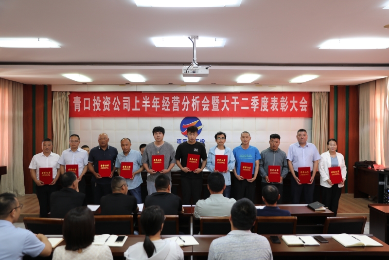 7月20日下午,青口投資公司召開上半年經營分析會暨大干二季度表彰大會,總結上半年經營工作,深入分析上半年經營形勢。公司黨委書記、董事長、總經理史祥平部署下半年生產經營工作并作講話。公司黨委副書記、工會主席梁永主持會議。公司在家領導、各單位黨政負責人、機關副職以上管理人員及受表彰人員參加會議。