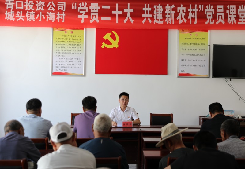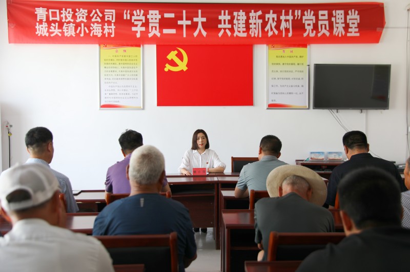為推動黨的二十大精神在鄉(xiāng)村落地生根,6月28日上午,青口投資公司、城頭鎮(zhèn)小海村聯(lián)合開展“學(xué)貫二十大 共建新農(nóng)村”黨員課堂,由公司機關(guān)優(yōu)秀黨務(wù)干部組成的二十大精神宣講隊,走進(jìn)結(jié)對共建的贛榆區(qū)城頭鎮(zhèn)小海村開展集中式、通俗化宣講。公司黨委副書記、工會主席梁永,城頭鎮(zhèn)副鎮(zhèn)長王延光,城頭鎮(zhèn)小海村支部書記徐坤參加活動。
